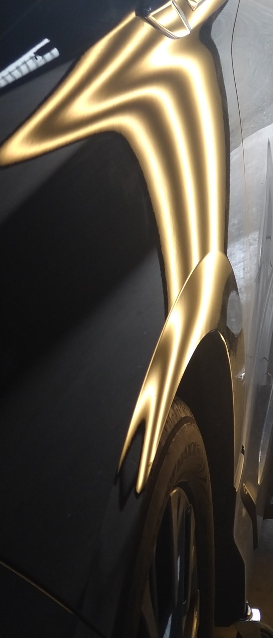 ユーザー様より左フェンダーにできたヘコミ修理の